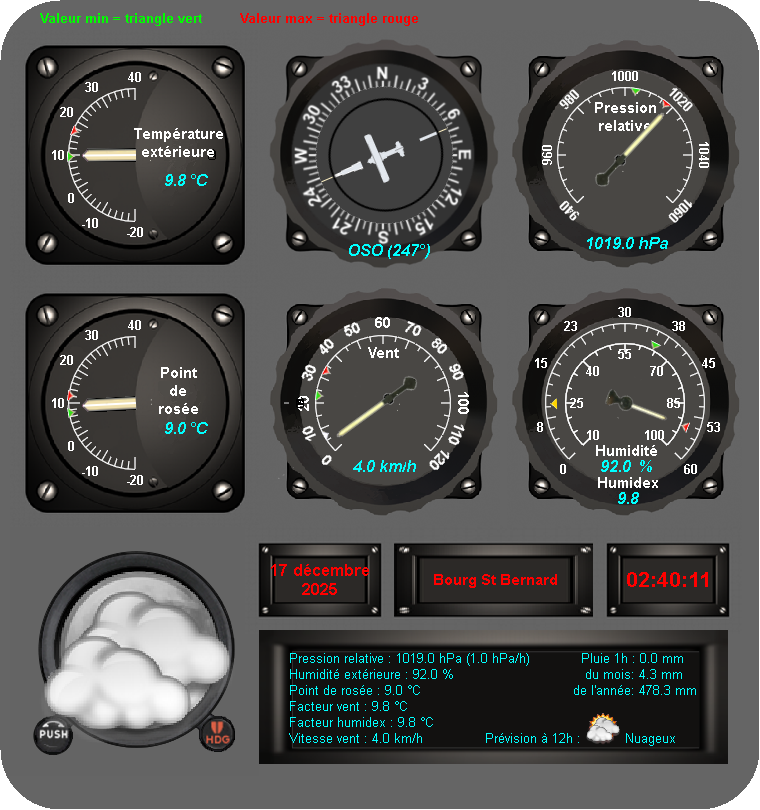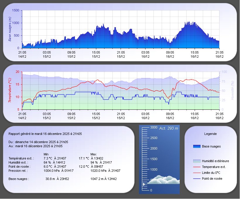 Page dédiée à l'aéronautique, plus précisement à nos amis de l'AVAT. vous pouvez cliquez sur AVAT pour découvrir le site de l'Association Vélivole et Aéronautique Toulousaine Si vous souhaitez voir apparaitre des graph ou des infos particulières, n'hésitez pas à me laisser un message :) Toutes les données du "Cockpit" (ci-dessous) sont actualisées toutes les 5 minutes.