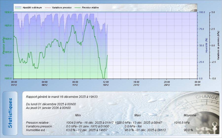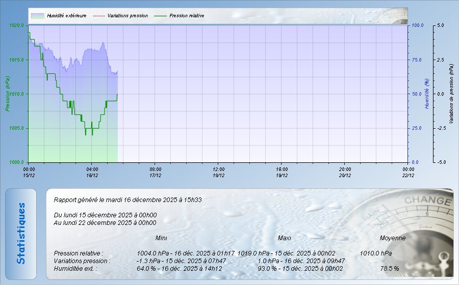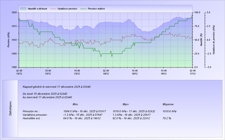 Relevés Pression et hygrométrie sur la semaine en cours