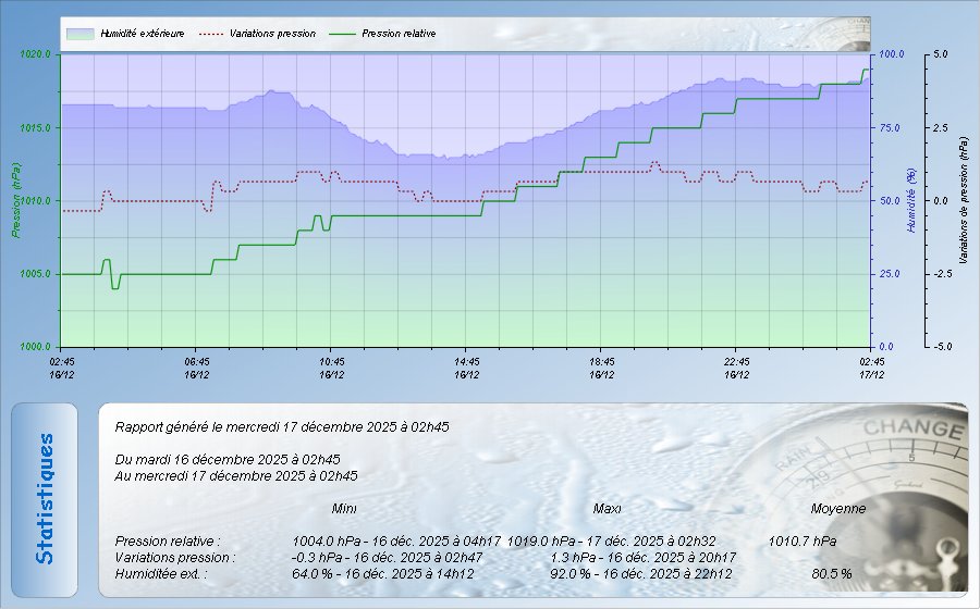 Relevés Pression et hygrométrie sur les dernières 24h